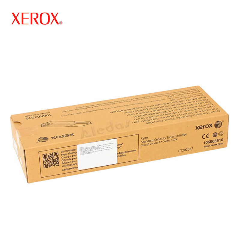 Cartucho de Tóner Xerox 106R03510 original de color Cyan con rendimiento de 2,500 páginas de impresión.