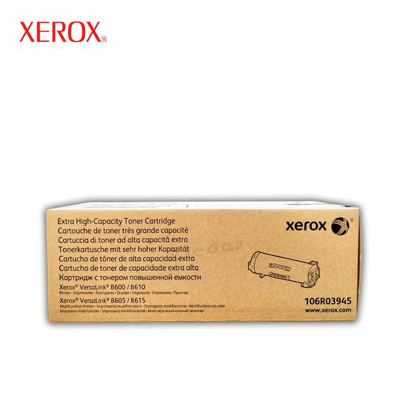 Cartucho de Tóner Xerox 106R03945 original de color Negro con rendimiento de 46,700 páginas de impresión.